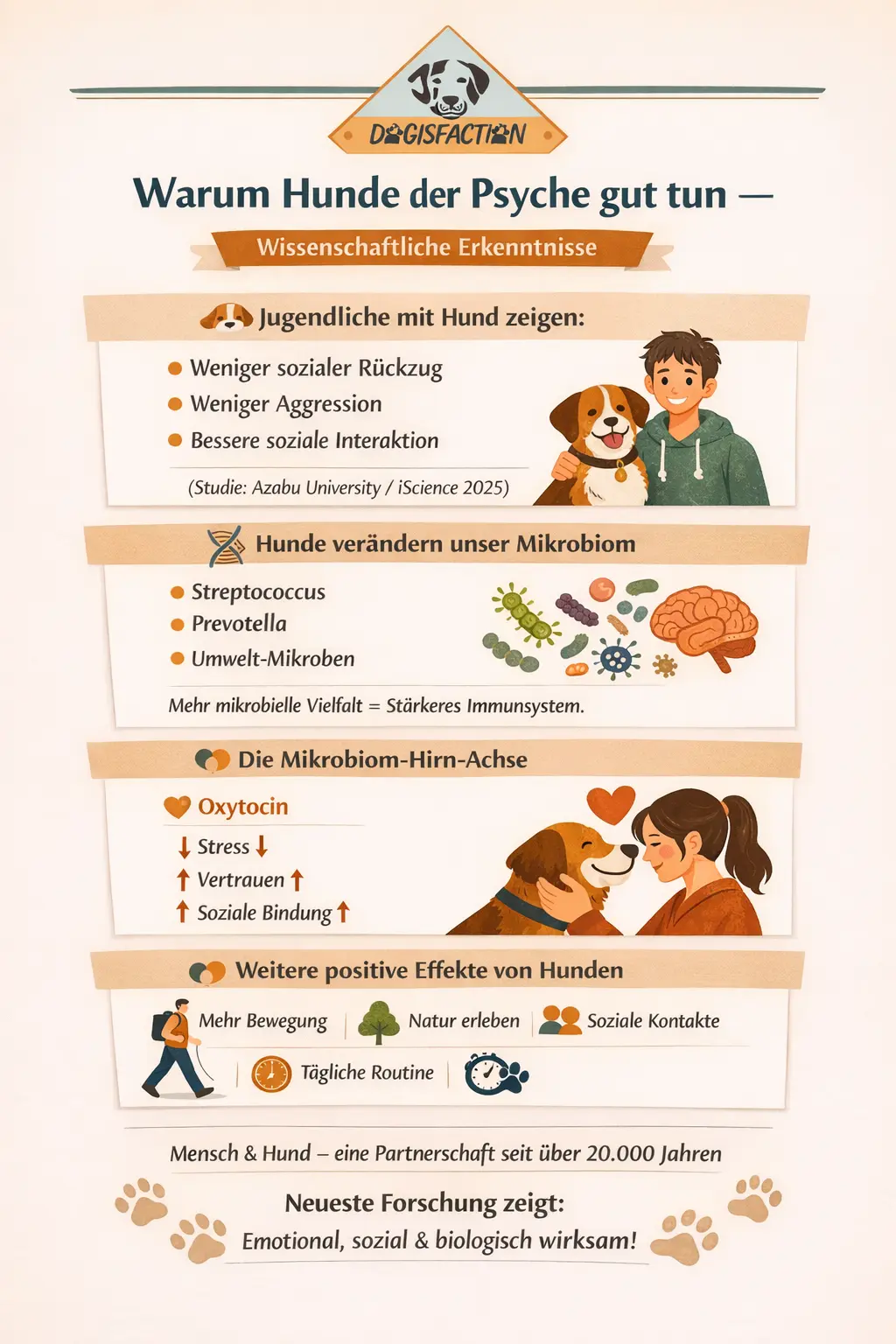 In diesem Artikel beleuchten wir nicht nur die Studie selbst, sondern erklären die Mechanismen dahinter: Wie der Austausch von Mikroorganismen zwischen Hund und Mensch funktioniert, welche psychobiologischen Effekte entstehen und warum soziale Bindung und Ko-Regulation bei Mensch–Hund-Beziehungen so bedeutend sind.