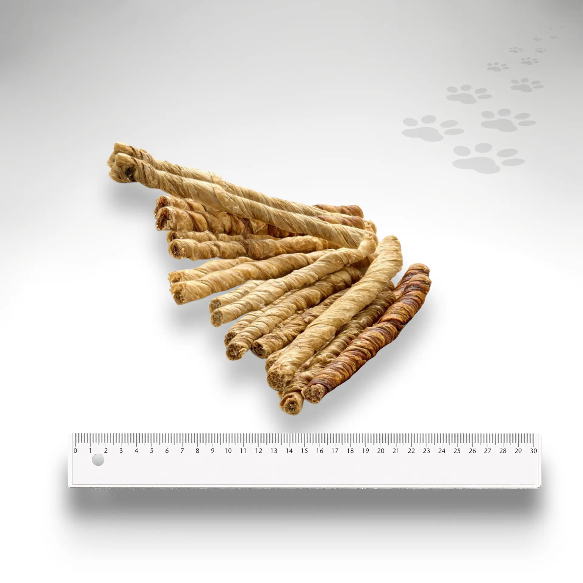 Unsere gedrehten Kälberblasen bieten einen bekömmlichen und zarten Kauspaß für kleine Hunderassen, junge Vierbeiner mit natürlichen Vorteilen für Zahnentwicklung und Kauverhalten. Die charakteristische weiche Konsistenz des dünnwandigen Blasengewebes macht sie zum idealen Kauartikel für Welpen, kleine Rassen und Senioren mit empfindlicher Kaumuskulatur. Durch die gedrehte Verarbeitung entsteht eine längliche Kauform, die spielerisch die natürlichen Kauinstinkte fördert und dabei schonend zu Zähnen und Zahnfleisch ist.