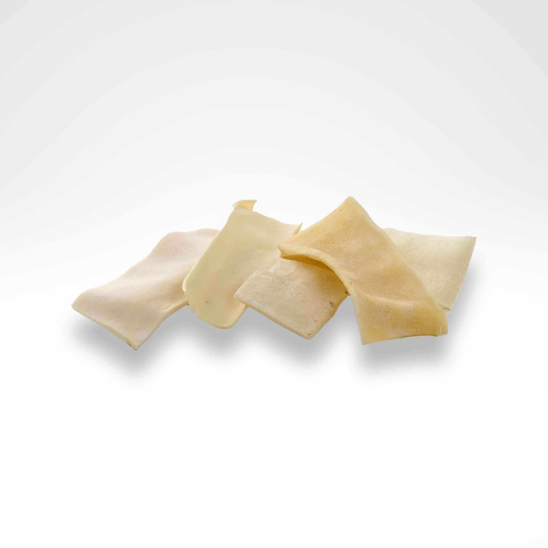 Diese hochwertigen Kauchips werden aus 100% reiner Wasserbüffelhaut hergestellt. Durch ein spezielles Herstellungsverfahren - ähnlich wie bei Popcorn - wird die Haut erhitzt, wodurch sie natürlich aufpufft und ihre charakteristische Farbe erhält. Dabei wird das Fett schonend entzogen, anschließend erfolgt eine sorgfältige Trocknung.