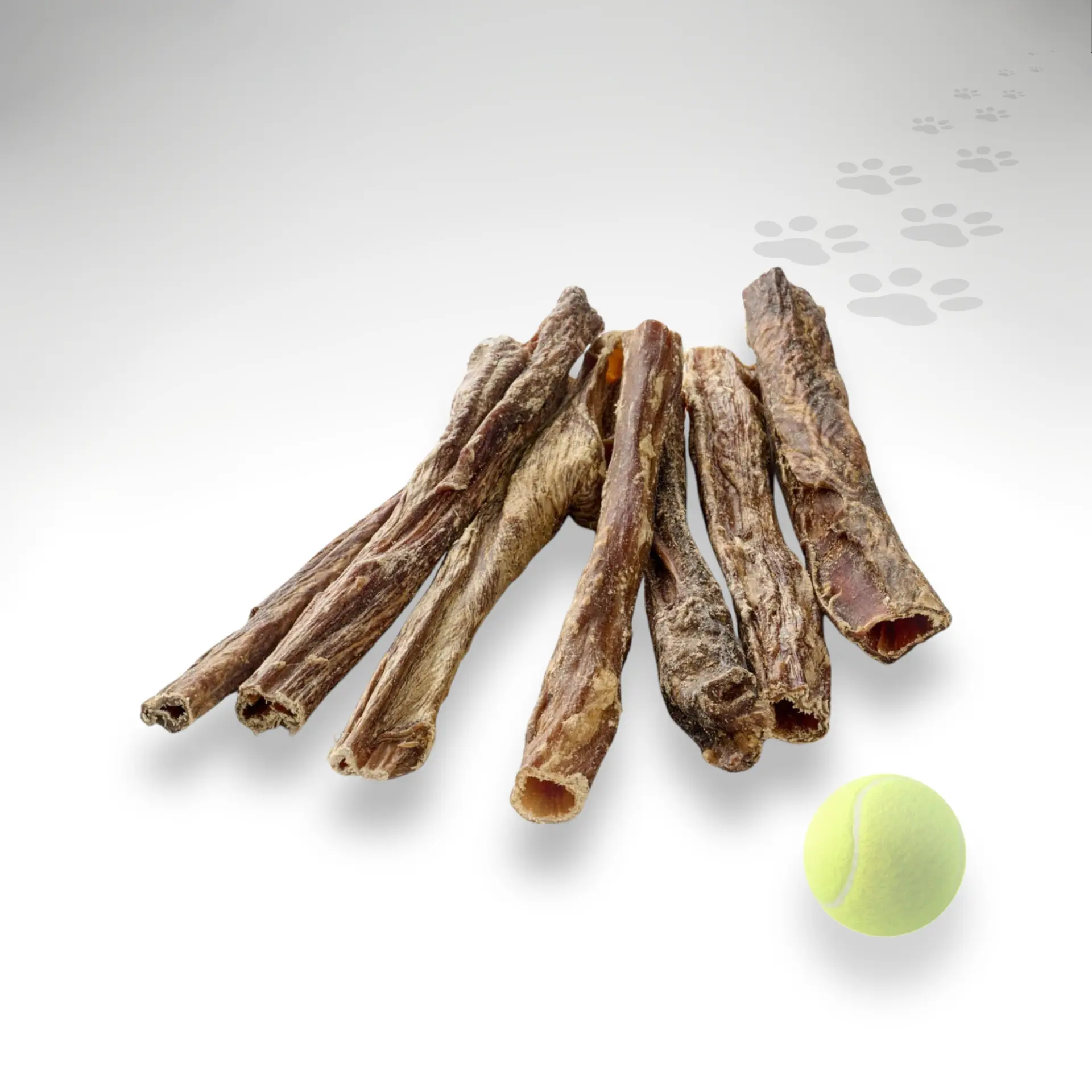 Die Speiseröhre besteht hauptsächlich aus quergestreifter Muskulatur und glatter Muskulatur, wodurch sie eine einzigartige Textur erhält, die von Hunden als besonders angenehm empfunden wird.