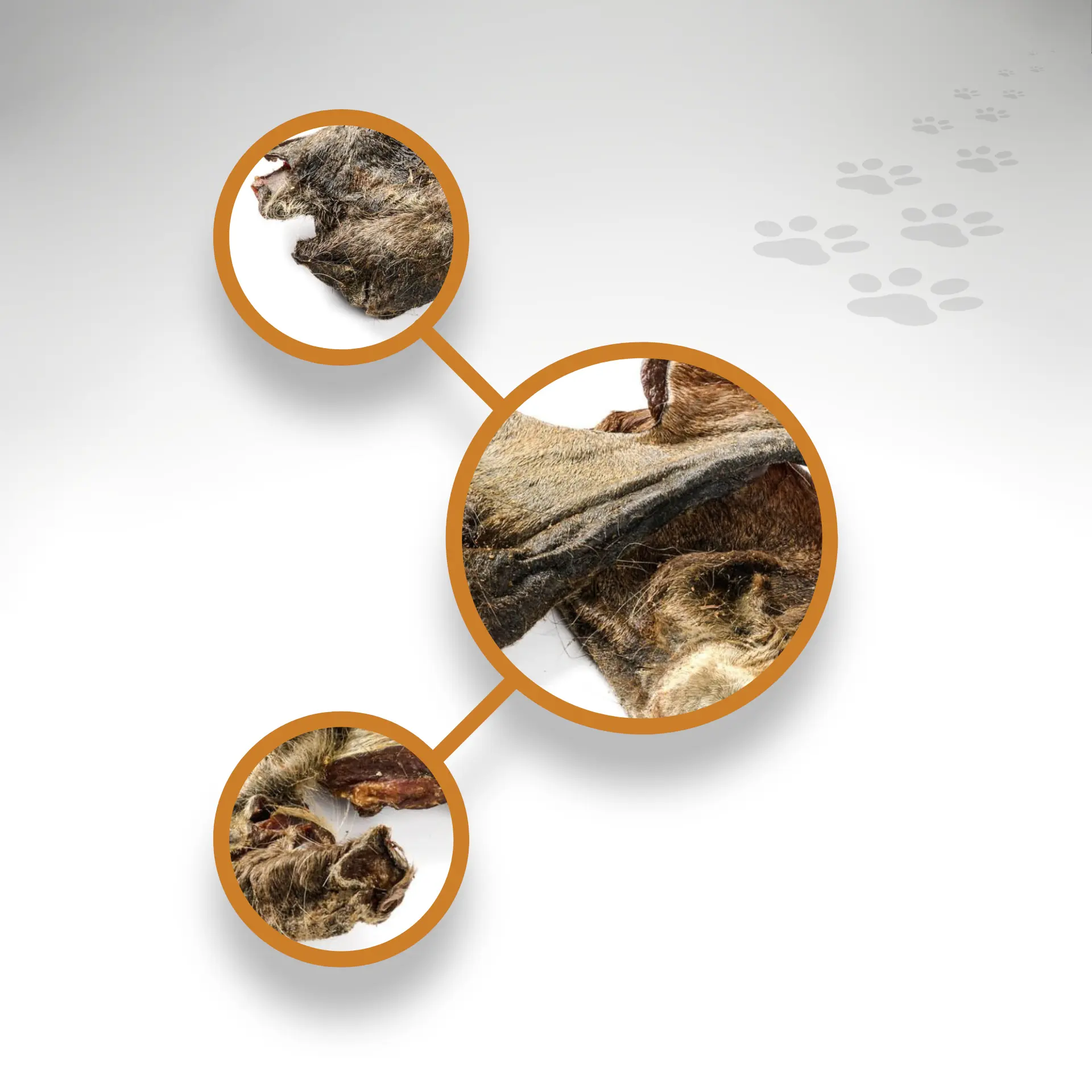 Die naturbelassenen Pferdenasen werden ohne Konservierungsstoffe schonend luftgetrocknet und behalten ihre charakteristische anatomische Struktur von 15-30cm Länge und 5-10cm Breite. Mit einem Gewicht von 150-550g pro 3er-Pack und ihrer harten Beschaffenheit bieten sie langen Kauspaß bei gleichzeitig geringer Geruchsentwicklung. Die gelegentlich vorhandenen Pferdehaare sind natürlicher Bestandteil und unterstützen die Darmreinigung auf natürliche Weise.