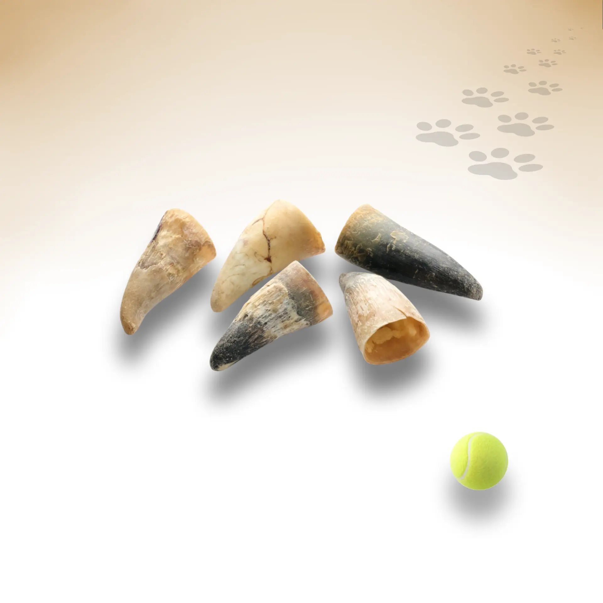 Das naturbelassene Rinder Horn wird ohne Konservierungsstoffe verarbeitet und ist 10,5-22cm lang bei 5-7cm Breite. Die Hornstruktur aus verdichtetem Keratin ist einer der härtesten natürlichen Kaumaterialien überhaupt. Reich an Mineralien wie Calcium und Phosphor bei geringem Fettgehalt - ideal für stundenlange Beschäftigung.