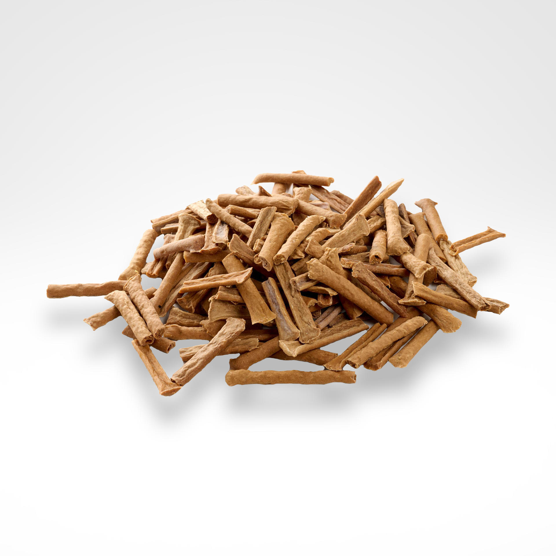 Die mittelhart getrockneten Sticks haben eine Breite von 1-3 cm und unterschiedliche Längen. Der moderate Fettgehalt von 10,1% macht sie zu einer ausgewogenen Belohnung. Durch das schonende Trocknungsverfahren wird der natürliche Geschmack bestmöglich bewahrt.